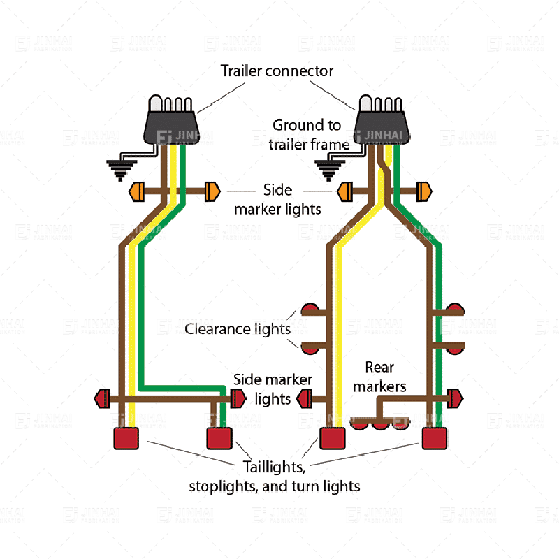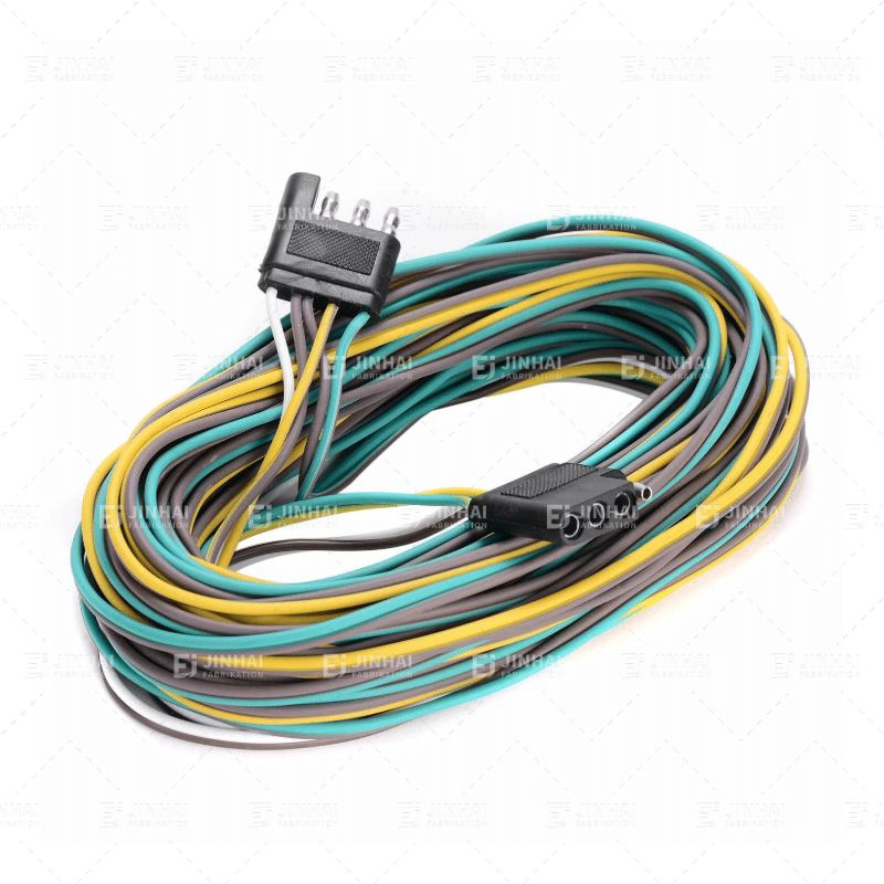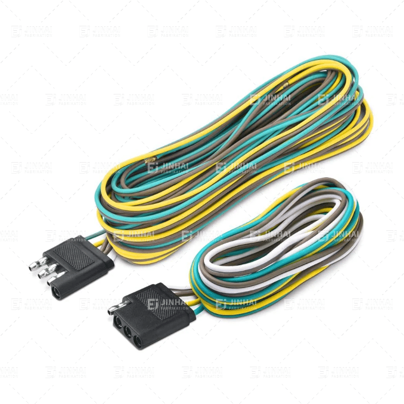 Memanfaatkan kabel trailer memastikan transmisi sinyal yang tepat antara kendaraan penarik dan trailer, termasuk lampu rem, lampu sein, dan lampu mundur. Rangkaian kabel JinHai menggunakan bahan pelindung PVC tahan abrasi dan terminal tembaga kaleng. Mereka memenuhi standar SAE J1128 dan biasanya kompatibel dengan berbagai jenis konektor, termasuk konektor 4, 5, dan 7 pin.